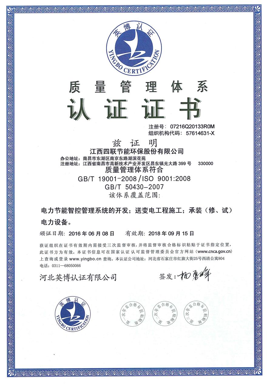 蓝鲸体育直播在线观看通过ISO90001质量管理体系认证